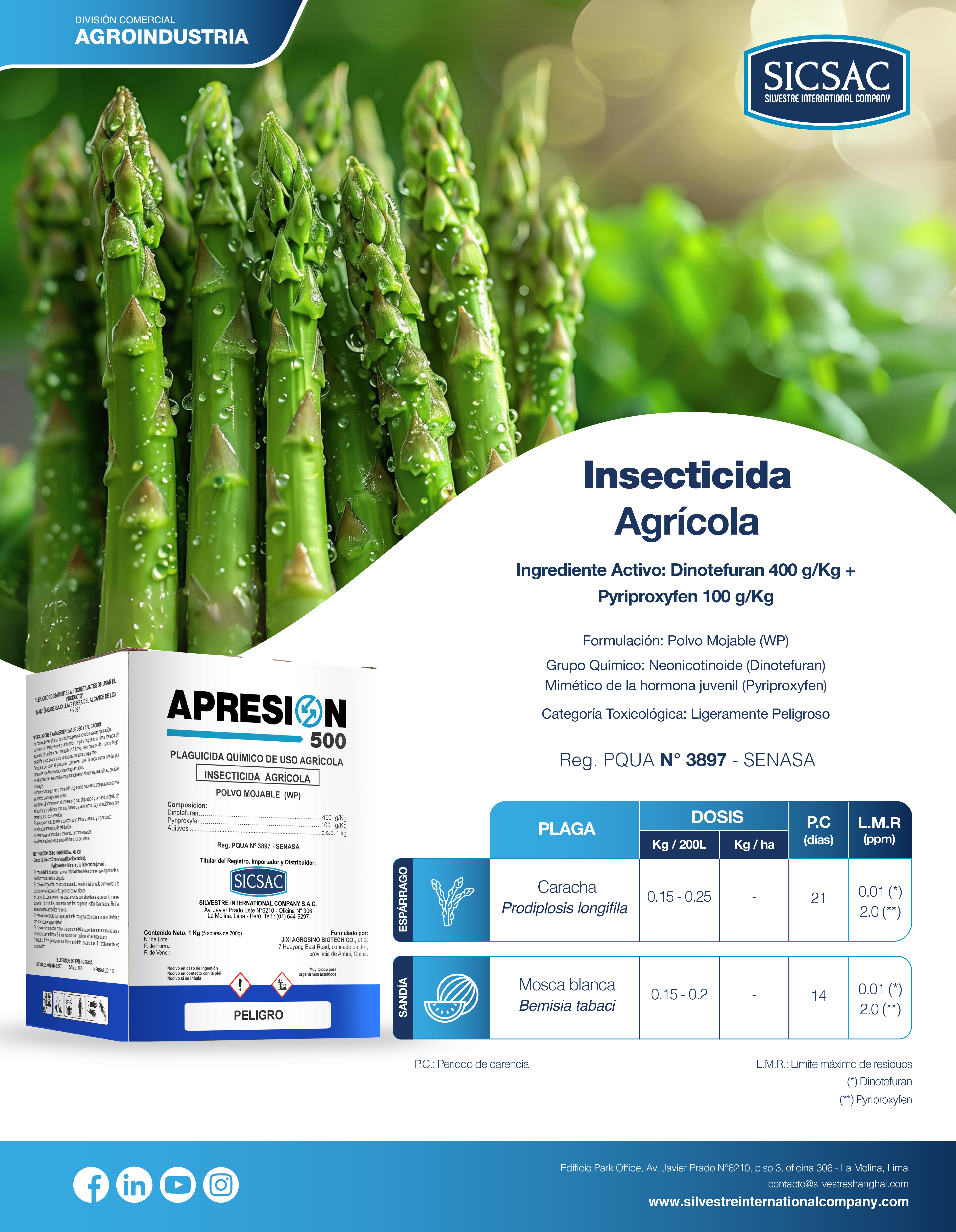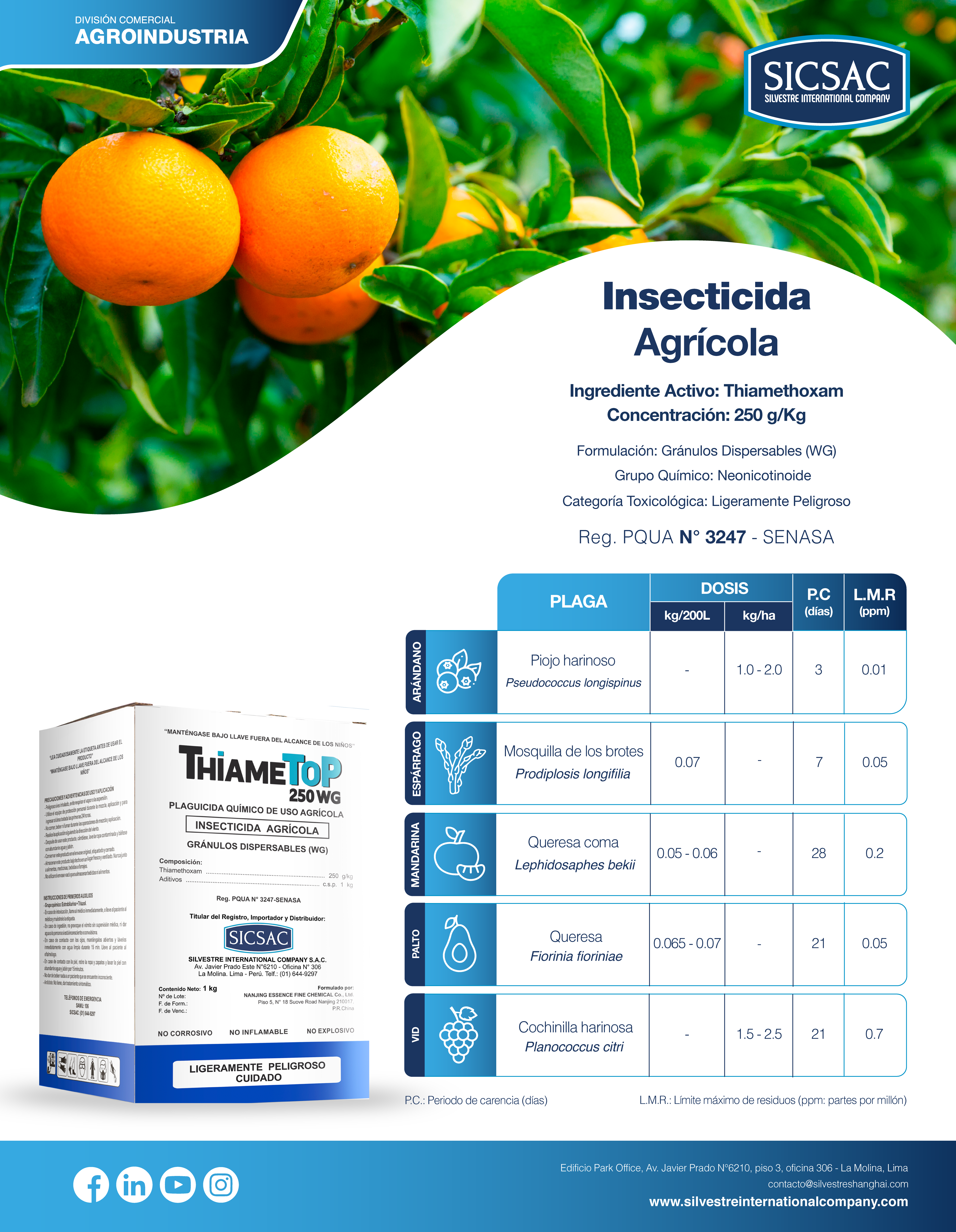Insecticida con gran actividad sistémica y actúa sobre el sistema nervioso central de los insectos picadores chupadores. Presenta rápida absorción y puede distribuirse a toda la planta, protegiendo al cultivo.