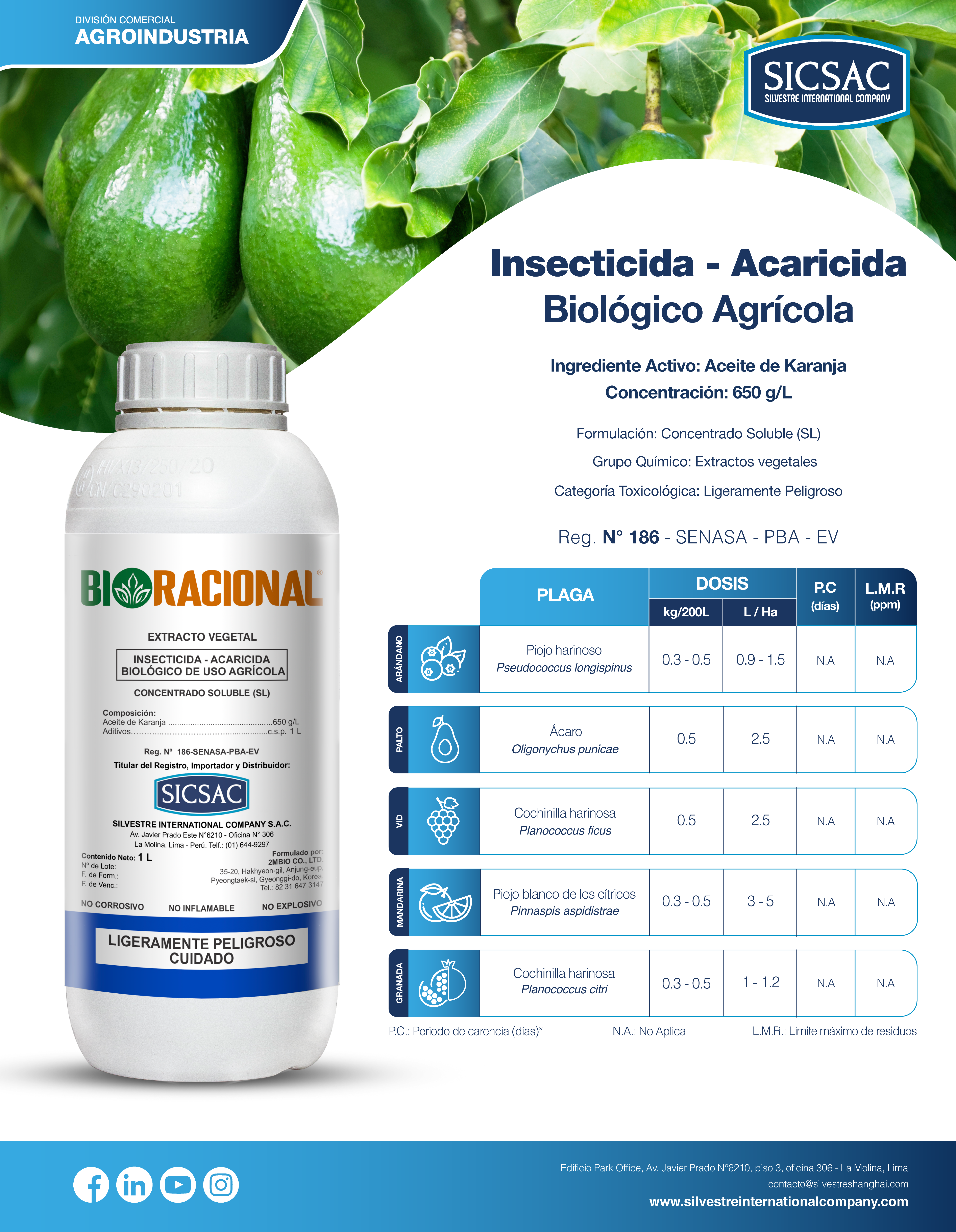 Bioinsecticida formulado a base de Aceite de Karanja, con una novedosa formulación en micro emulsión, este insecticida impide el proceso de la muda, además de afectar el sistema nervioso de los insectos expuestos.