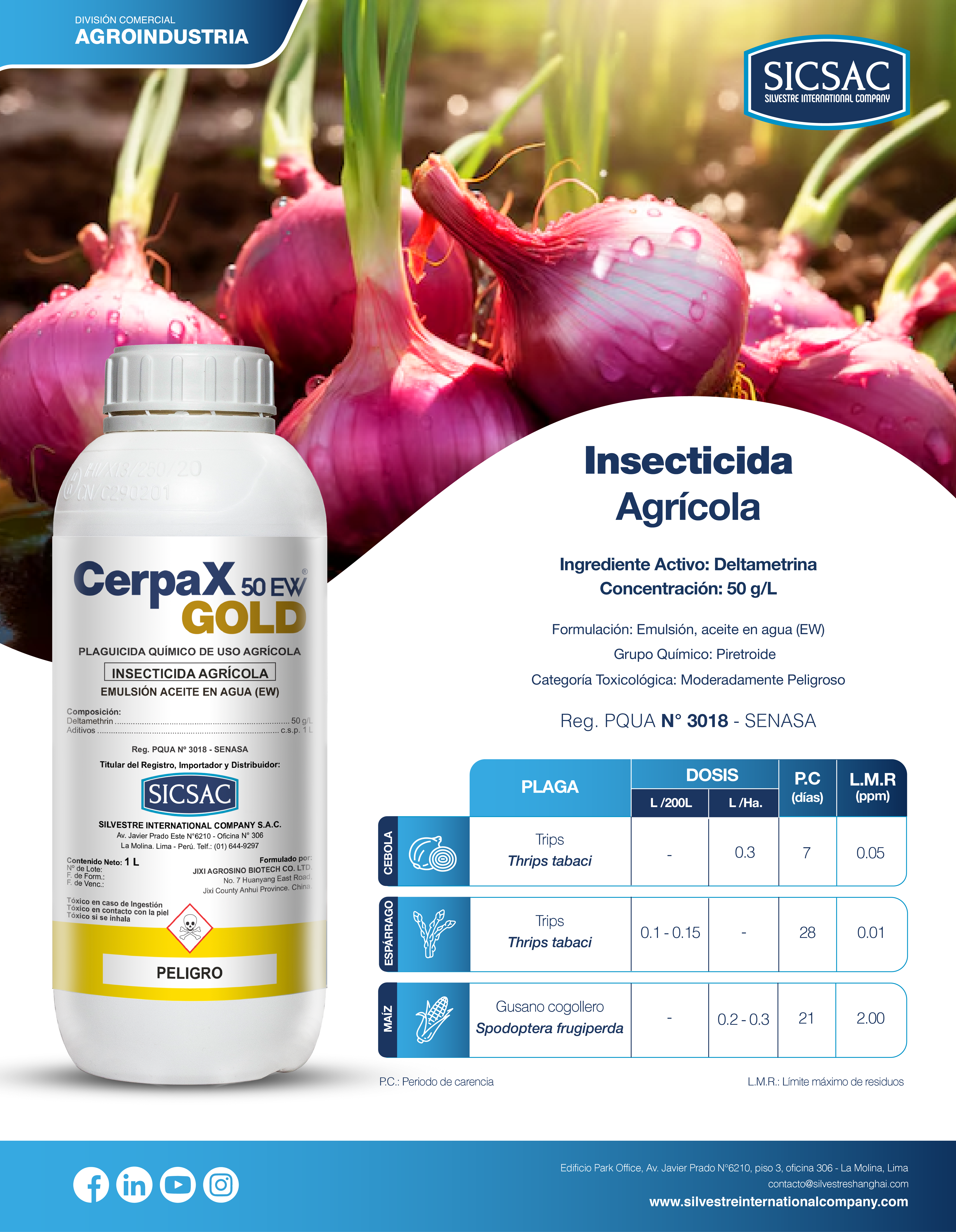 Piretroide de amplio espectro de acción, con una formulación novedosa; actúa por contacto directo e ingestión. Posee una alta