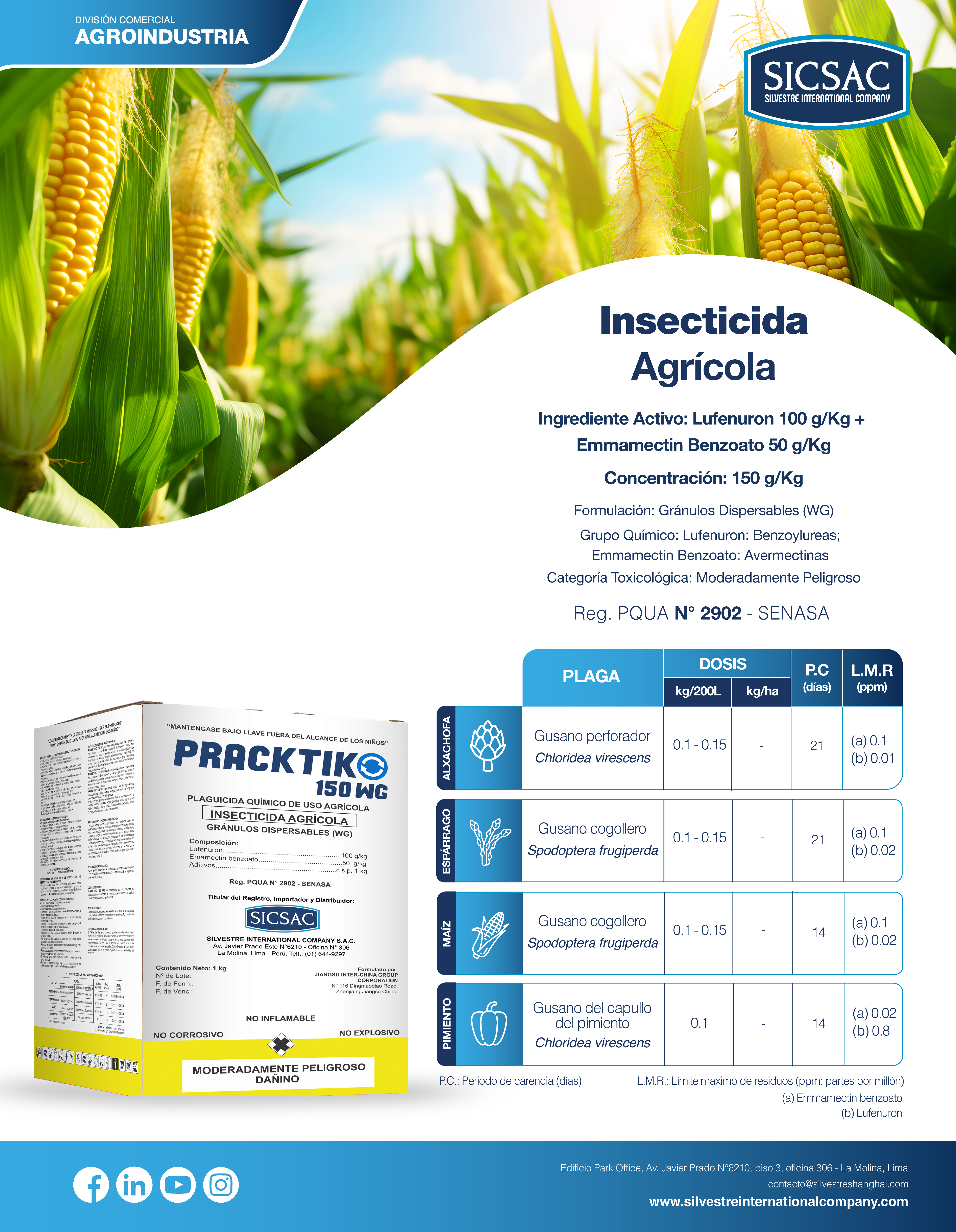 Insecticida con doble ingrediente activo, con un gran efecto translaminar y de choque sobre larvas en proceso de alimentación, además de un efecto residual sobre larvas neonatas y en proceso de muda.