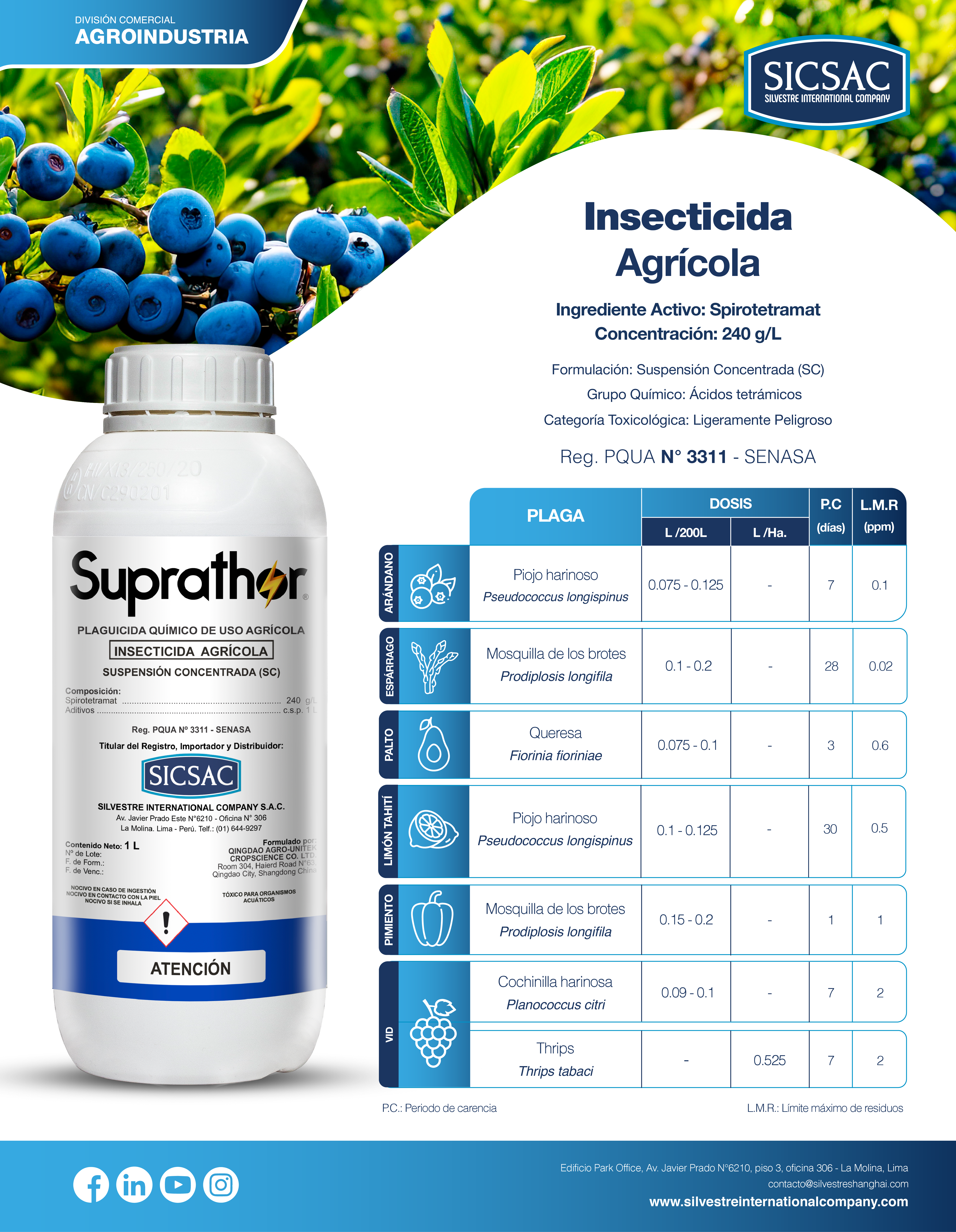 Insecticida foliar del grupo de los Ácidos tetrámicos (Ketoenoles), inhibidor de la biosíntesis de los lípidos de tal manera que la muda no puede completarse, ocasionando la muerte del insecto.